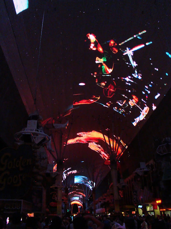 Trong nhiều entry tới, tôi sẽ chia sẻ với các bạn nhiều hình ảnh những giây phút tuyệt vời ở đây.. Trong entry nầy, xin chia sẻ một vài hinh ảnh Vòm “Fremont Street Experience” buổi tối, khi đèn đuốc sáng rực không nơi nào bằng. (Sẽ bổ túc sau. Các bạn tự do chép lại bài trong Blog. Tuy nhiên xin các bạn nhớ đề tên tác giả và đường link của bài hoặc Blog. Cảm ơn nhiều.).
