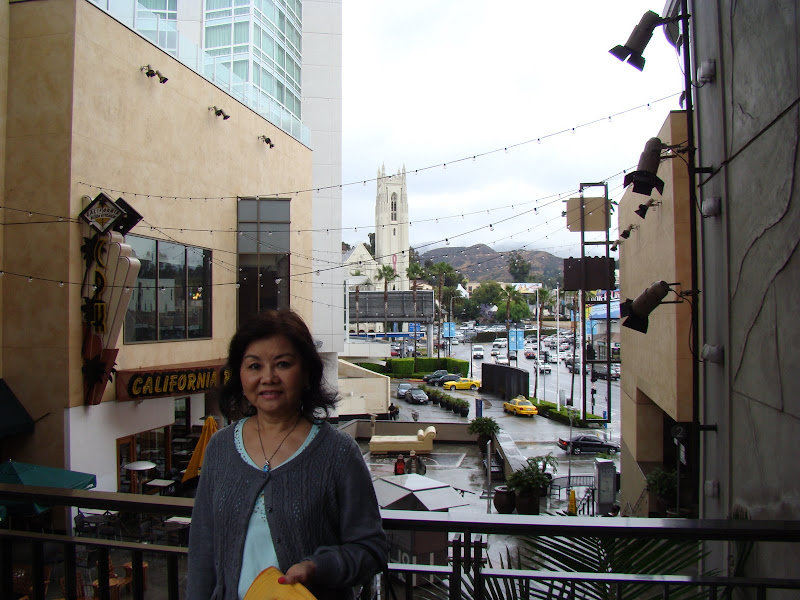 Quang cảnh tiệm tùng và quán ăn trong khu nhà hát Kodak. Từ khu này, ngó sang bên kia đồi là tấm bảng nổi tiếng “Hollywood”. Vì sương mù nên tấm bảng nầy lúc ẩn lúc hiện..