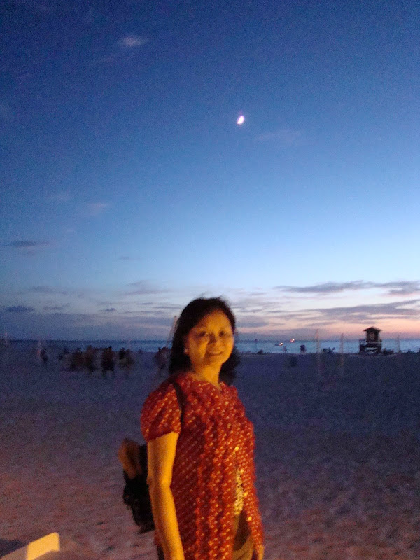 Trong các entry trước, tôi đã chia sẻ với các bạn một vài hinh ảnh bãi biển này. Trong entry này xin chia sẻ với các bạn một vài hinh ảnh cảnh hoàng hôn trên bãi biển Clearwater, khi mặt trời lặng xuống biển, các cây dừa trong đêm tối gợi nhớ hình ảnh quê hương Việt Nam, đẹp quá.