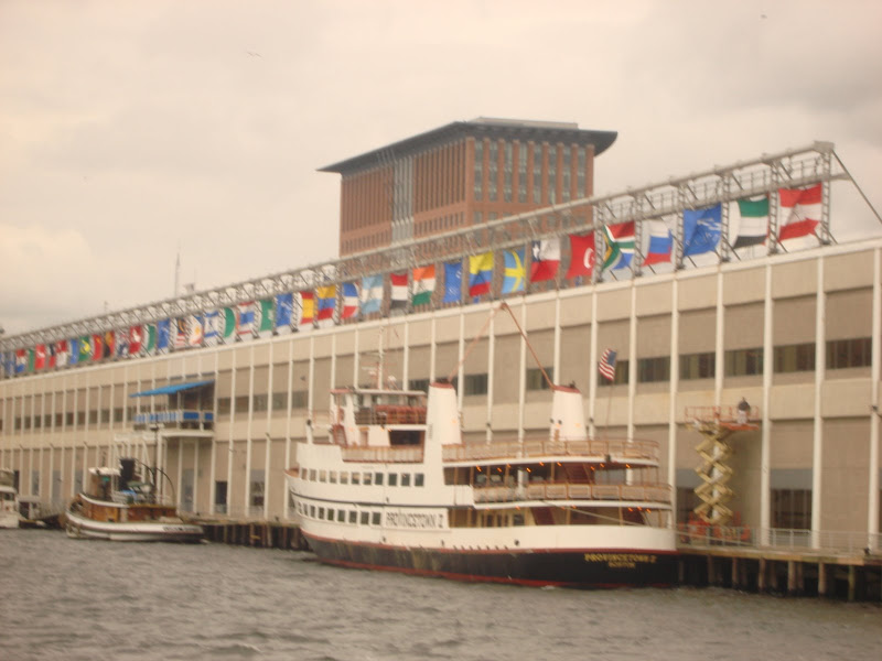 World Trade Center của Boston, cờ xí ngộp trời.. Trung tâm thương mại thế giới của Boston rất nhỏ so với World Trade Center của New York, nay không còn nửa..