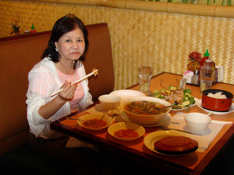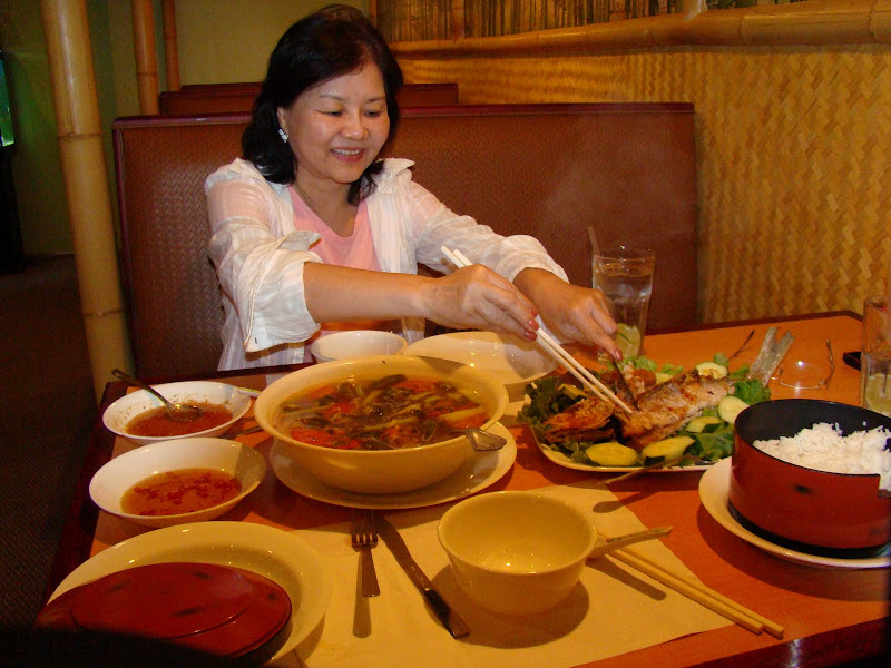 Ăn cơm ngon. Mấy cháu bưng dọn ở đây cũng là sinh viên Việt Nam, một cháu năm nay ra trường sẽ về nước. Tôi rất vui thấy người Việt Nam mình có chút tình đồng hương, mặc dầu sống trong hai chế độ chánh trị khác nhau, với nhiều chuyện đáng tiếc đã xảy ra trong quá khứ. Thôi đi ăn cơm Việt Nam, tôi không muốn bàn chuyện chánh trị đâu.