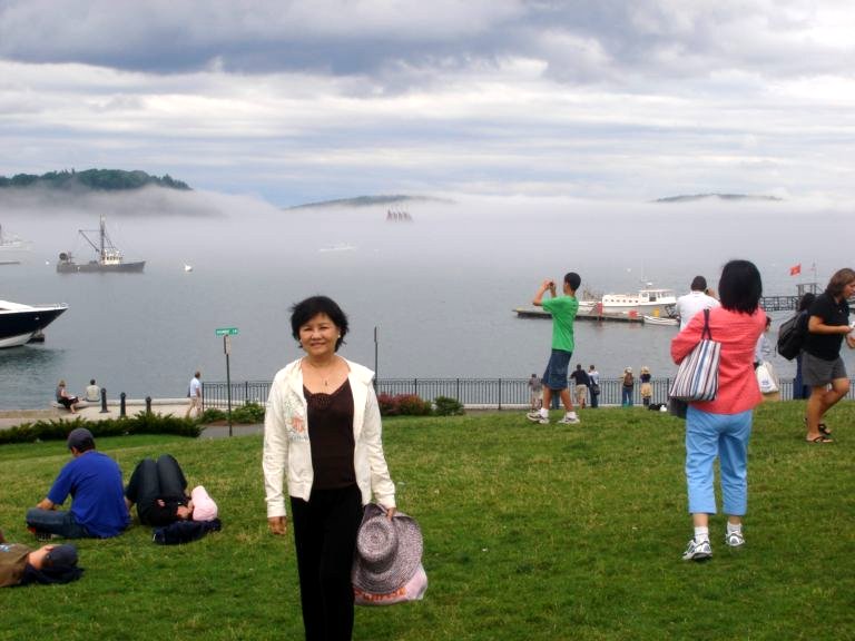 Vịnh Bar Harbor sau lưng chúng tôi rất đẹp, phong cãnh hữu tình..