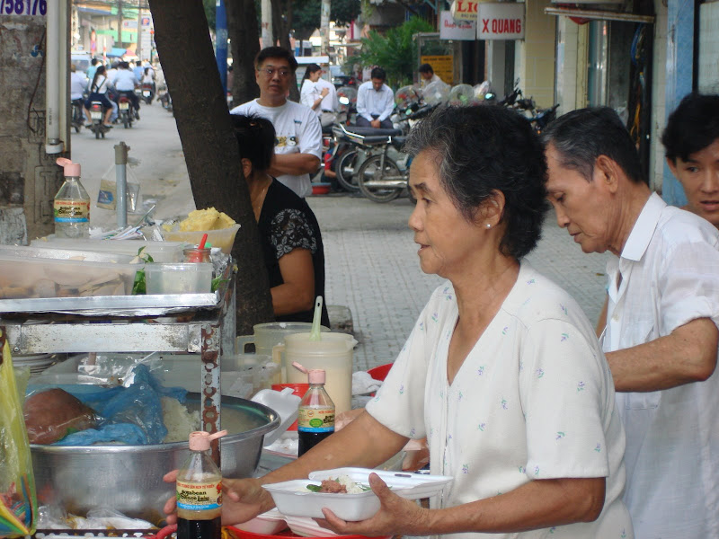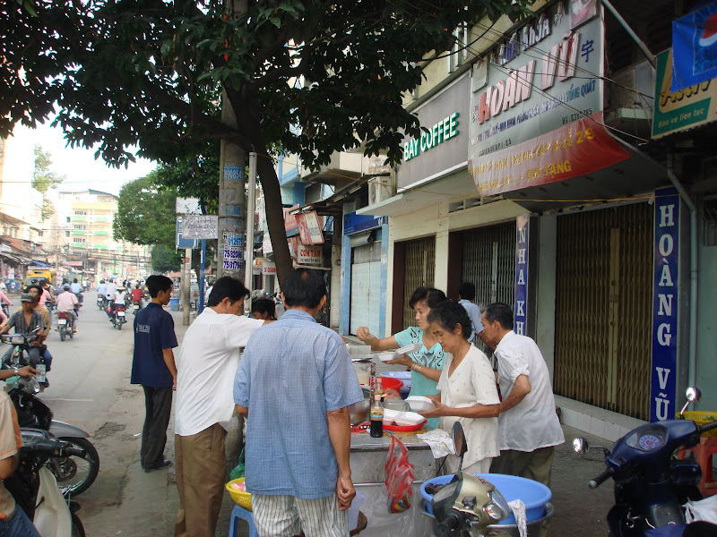 Vợ chồng tôi ăn sáng ở vệ đường, hoà nhập với người dân thành phố mỗi sáng vội vã đến ngồi ăn một dĩa bánh cuốn chả lụa, hoặc một dĩa cơm sườn bì chả, uống một ly sữa đậu nành nhiều mùi vị quê hương, bốn người ăn, trả không tới 5 đô la, rẽ và ngon quá.